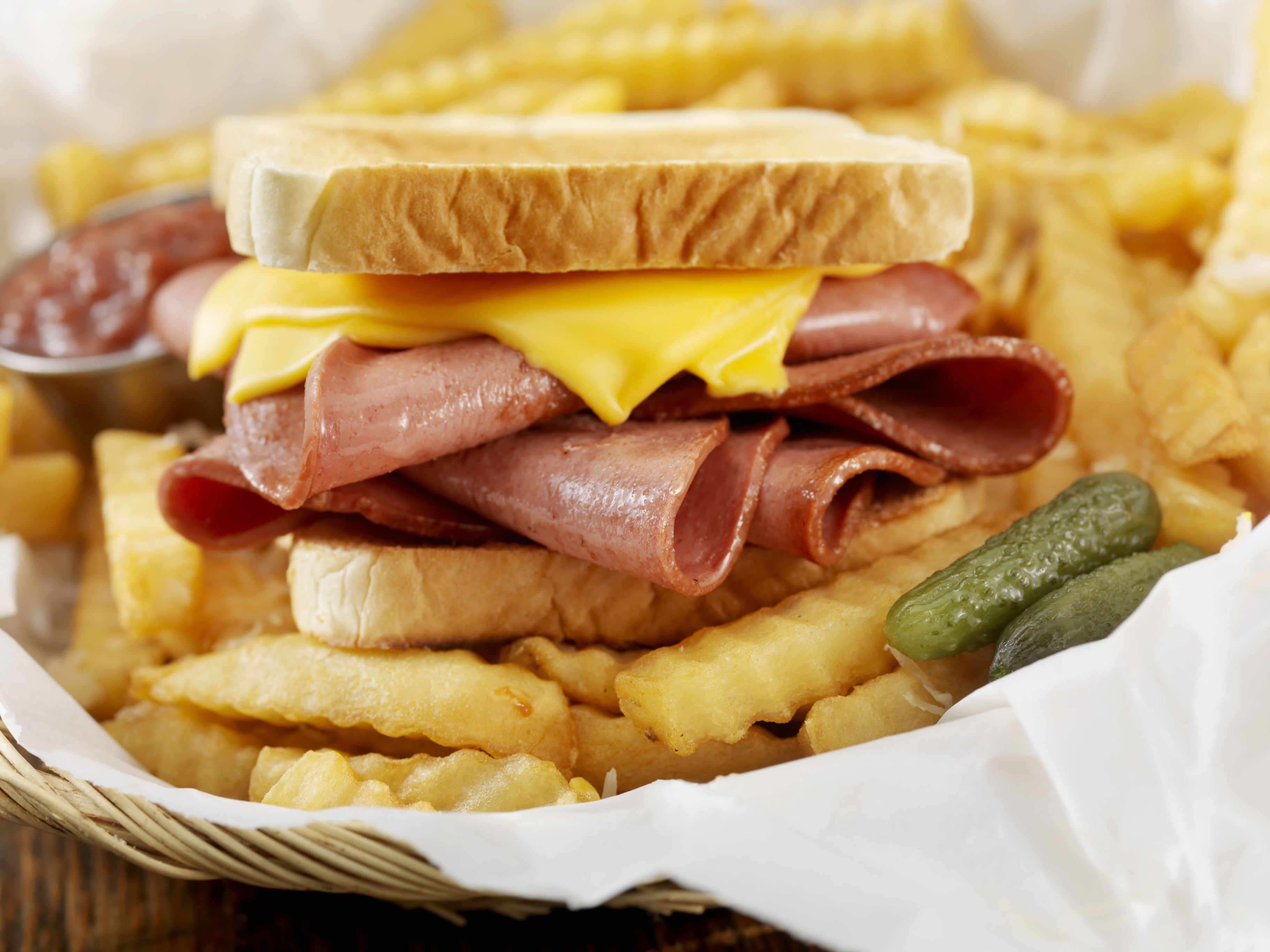 Previous Image Next Image Fried Bologna Sandwich with Fries Fried Bologna Sandwich with Melted Cheese and Fries-Photographed on Hasselblad H3D2-39mb Camera