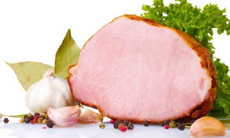 tasty ham isolated on white